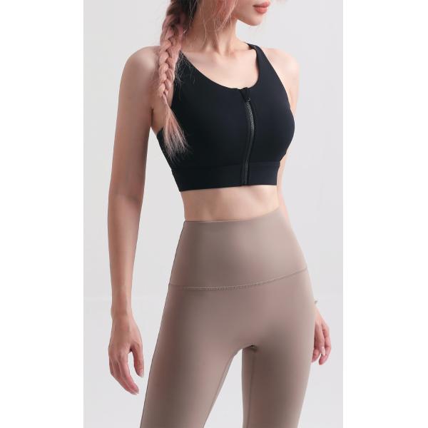 Women Yoga Workout Bra With Front Zipper Cool Feel Fabric Sports Bra Images |